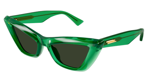 Full acetate cat-eye feminine style. "Sculptured" edgy frame. Sharp faceting recalling net lines of Triangle (new brand code).