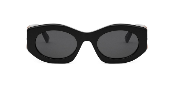 One-of-a-kind design with bold geometries: faceted front and bold temples with embossed Diva's pattern
