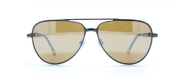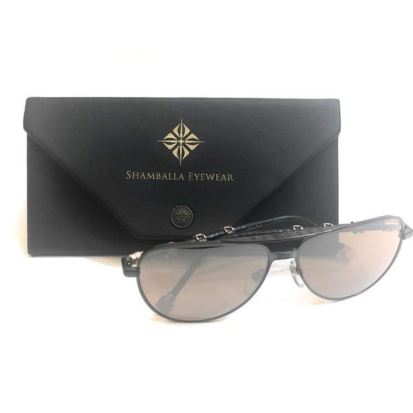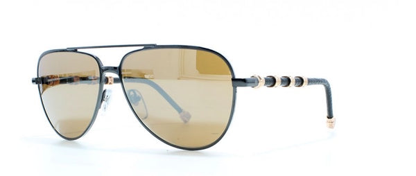 These Nirvana sunglasses feature an aviator shape with rose gold accents and embossed leather temples.