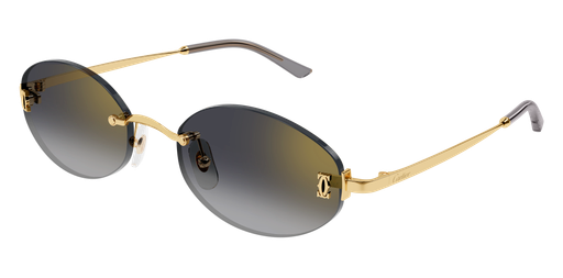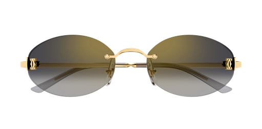 Light and modern Double C metal interpretation with the iconic logo detail on the front. Unisex narrow oval shape in rimless construction for a contemporary look. Light colorful lenses perfectly match the frame conferring a fresh look.Precious finish in gold combined with transparent acetate temple tips to guarantee comfort.