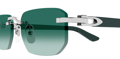 Contemporary yet sophisticated reinterpretation of the historical Décor C temple in combi version. Easy-to-wear soft rectangular shape in rimless construction. Iconic Décor C detail perfectly inserted in the acetate temples as aesthetical and functional element of the hinge. Precious finish in gold or platinum paired with new pearled acetate temples on some SKUs.